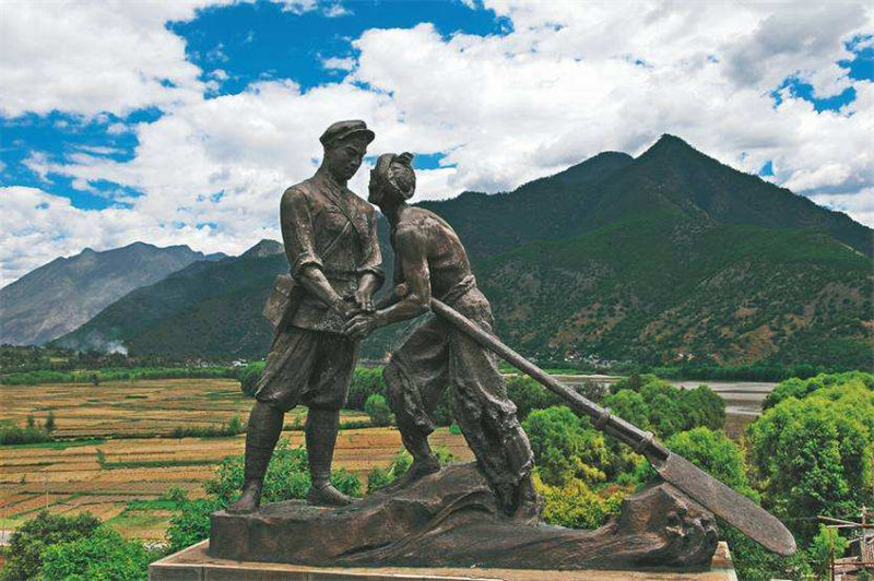 1936年4月25日黄昏,红二、六军团渡江先锋团——四师十二团,由团长黄新廷带领十几名战士,于木瓜寨驾起在海洛塘搞到的小船首渡成功,接着,大队人马点燃火炬开始夜渡。渡过江的红军在沿岸继续找船,总共得到七条船,二十八名水手,还请木匠扎了一些筏子,于是,在东起石鼓西至巨甸的一百多里江面上,二、六军团全面展开了渡江作业。经过四天三夜不停地摆渡,到28日晨,二、六军团一万八千人全部渡过金沙江,将敌人远远甩在了身后。